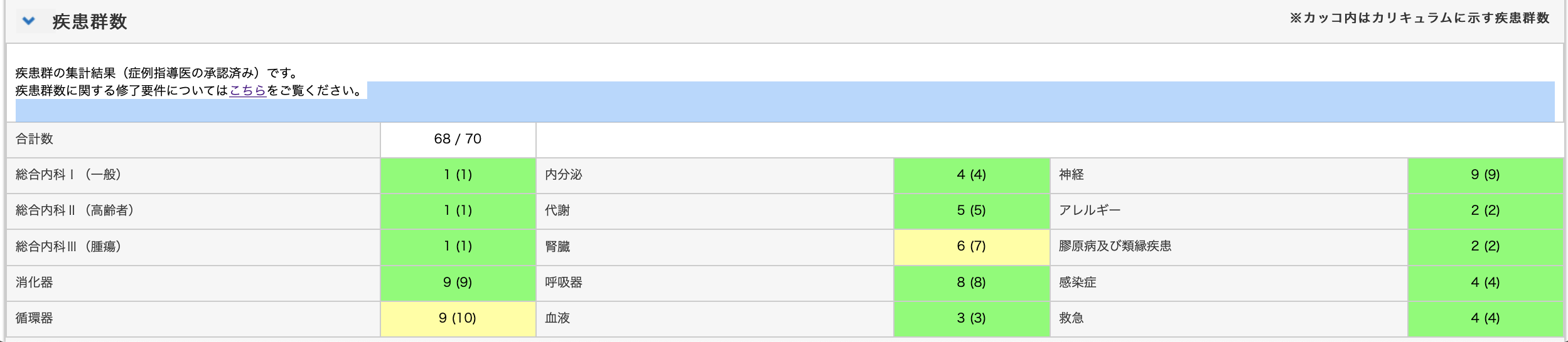 自分が過去に研修手帳を確認した際に、文中で触れているように「内科専攻医には,67+3 に大別された疾患群の症例を主担当医として疾患群ごとに最低一つは経験することが求められる.」と書かれていたので、70疾患群がマストだと思っていました。(実際に僕は70疾患群埋められるよう症例登録をしていました。)